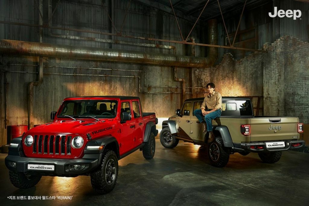 올 뉴 지프 글래디에이터와 지프 브랜드 홍보대사로 선정된 비(RAIN)/사진=FCA코리아