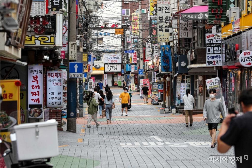 최근 수도권을 중심으로 신종 코로나바이러스감염증이 급속도로 확산하며 사회적 거리두기 2.5단계가 진행되고 있는 31일 서울 서대문구 연세로 인근이 한산한 모습을 보이고 있다./강진형 기자aymsdream@