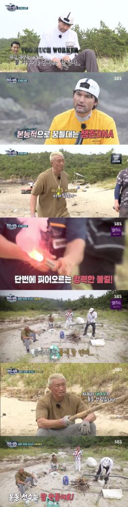 박찬호는 "사실 제 몸에는 이런 데 와서도 살아남을 수 있는 DNA가 있다. 아버지가 형제들한테 맥가이버라고 불렸는데 그런 아버지에게서 DNA를 물려받았다"라며 파이어 스틸로 불을 피우기 시작했다.