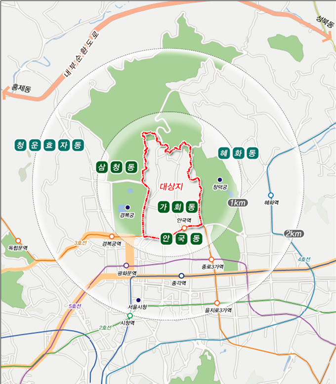 북촌 일대는 경복궁과 창덕궁 사이에 위치한 한옥밀집지역으로 이번 지구단위계획 변경으로 세탁소, 소매점, 약국, 한의원 등의 생활편의시설 설치가 가능해졌다. 또 화랑 등 문화ㆍ집회시설과 전통 관련 휴게음식점도 허용된다.