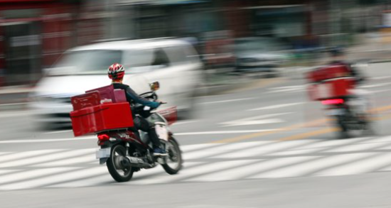 한 배달원이 빠른 속도로 음식 배달을 하고 있다. 사진은 기사 중 특정표현과 무관.
