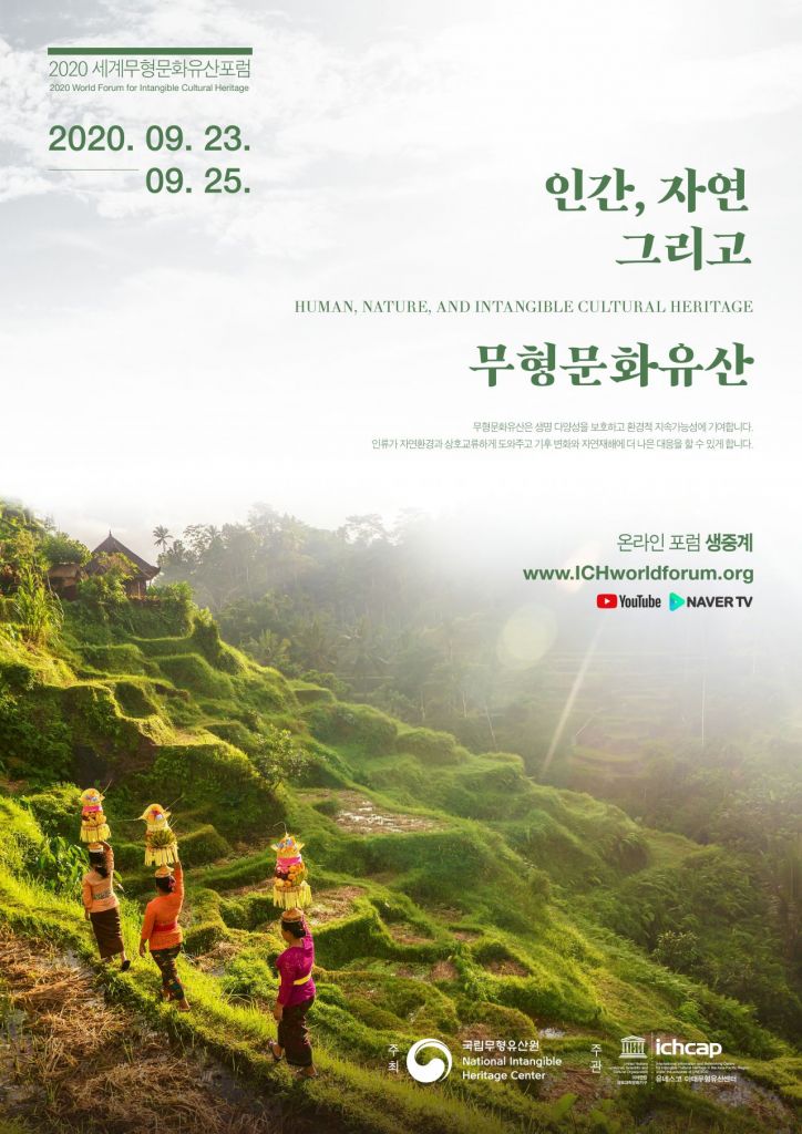 제4회 세계무형문화유산포럼이 오는 23~25일 온라인 회의로 진행된다. 국립무형유산원이 주최하고 유네스코아태무형유산센터가 주관하는 국제 포럼이다. 세계 12개국 환경·무형문화유산 전문가 스무 명이 무형문화유산으로 인간과 자연의 관계를 탐색하고 나아갈 방향을 모색한다. 관계자는 "신종 코로나바이러스 감염증(코로나19) 대유행과 기후변화라는 위기에서 무형문화유산의 가치를 재탐색하는 시간이 될 것"이라고 했다.