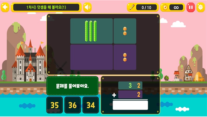 학생들은 기능성 게임형 문제 풀이를 통해 자신의 학습 수준을 진단하고 인공지능 알고리즘을 통해 분석된 학습 결손 부분과 보완용 콘텐츠를 제공 받을 수 있다. 수학탐험대 홈페이지 문제 풀이 장면. (제공=교육부)