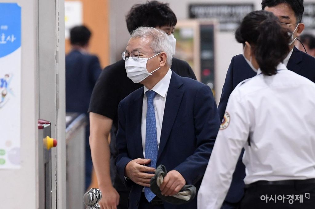 사법행정권 남용 의혹을 받는 양승태 전 대법원장이 18일 서울 서초구 서울중앙지법에서 열린 속행 공판에 출석하기 위해 법정으로 향하고 있다./김현민 기자 kimhyun81@