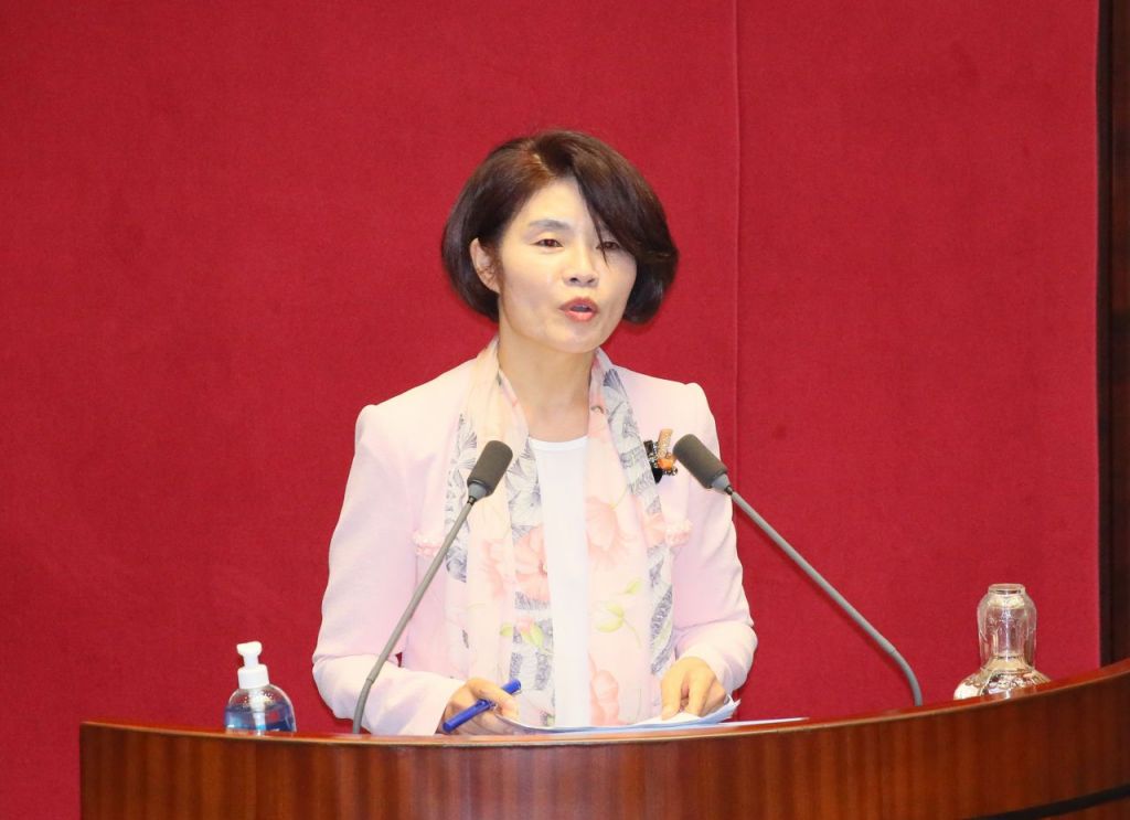 한정애 더불어민주당 의원이 지난 7월 국회 본회의에서 교육·사회·문화 분야에 관해 대정부 질문을 하고 있다. /사진=연합뉴스