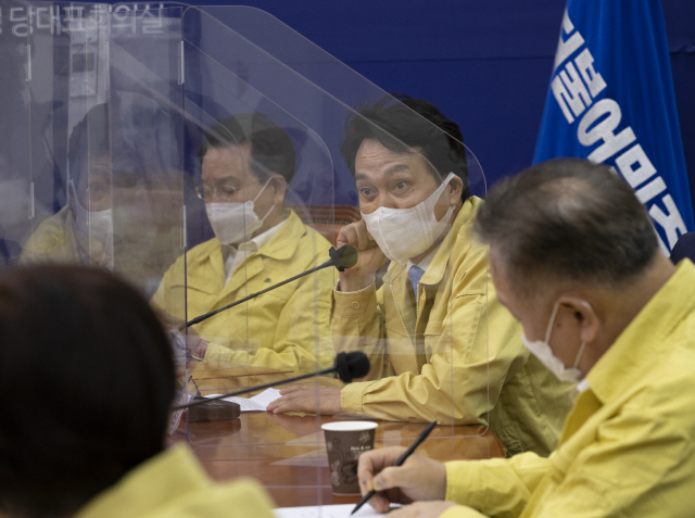 안민석 더불어민주당 코로나19국난극복위원회 공동위원장(가운데)이 지난 8일 오후 서울 여의도 국회에서 열린 제1차 코로나19국난극복위 전체회의에서 발언하고 있다. / 사진=연합뉴스