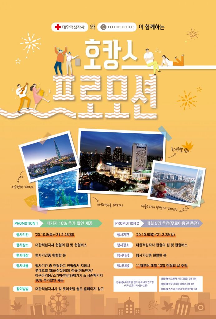 또 헌혈의 날(매월 13일)에 롯데호텔 월드의 무료 숙박권 등 다양한 경품을 제공하는 대한적십자사 홈페이지 이벤트에도 참여 가능하다. 롯데호텔 공식 홈페이지 및 유선 예약 고객에 한해 이용 가능하다.