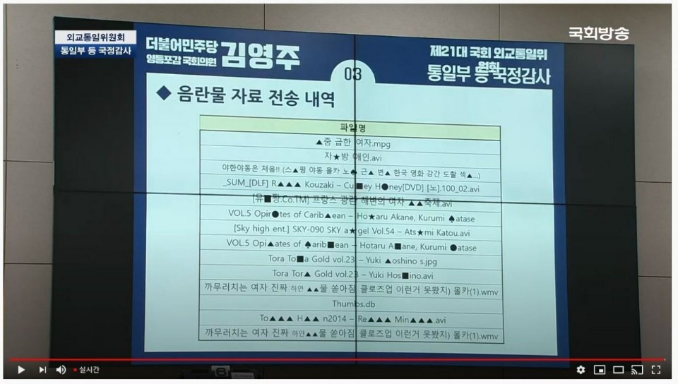 민주평통이 김영주 더불어민주당 의원실에 제출한 USB에 담겨있던 불법 음란물 파일 제목