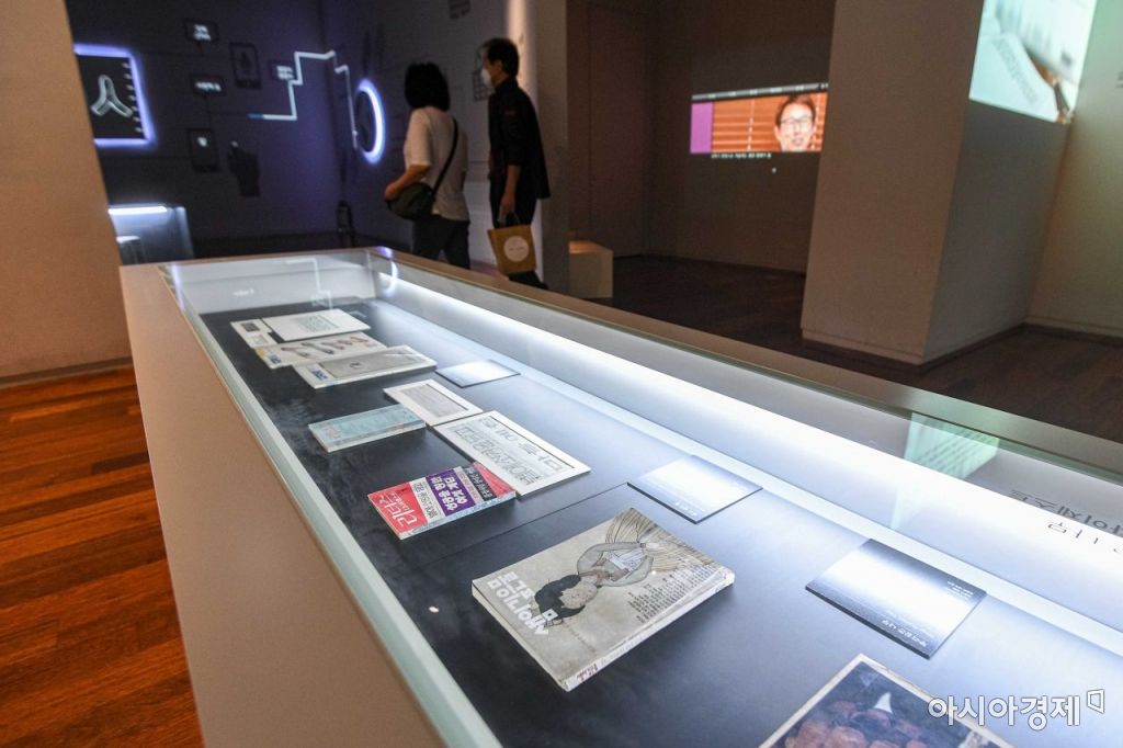 제 574돌 한글날을 앞둔 7일 서울 용산구 국립한글박물관을 찾은 관람객들이 전시장을 둘러보고 있다.