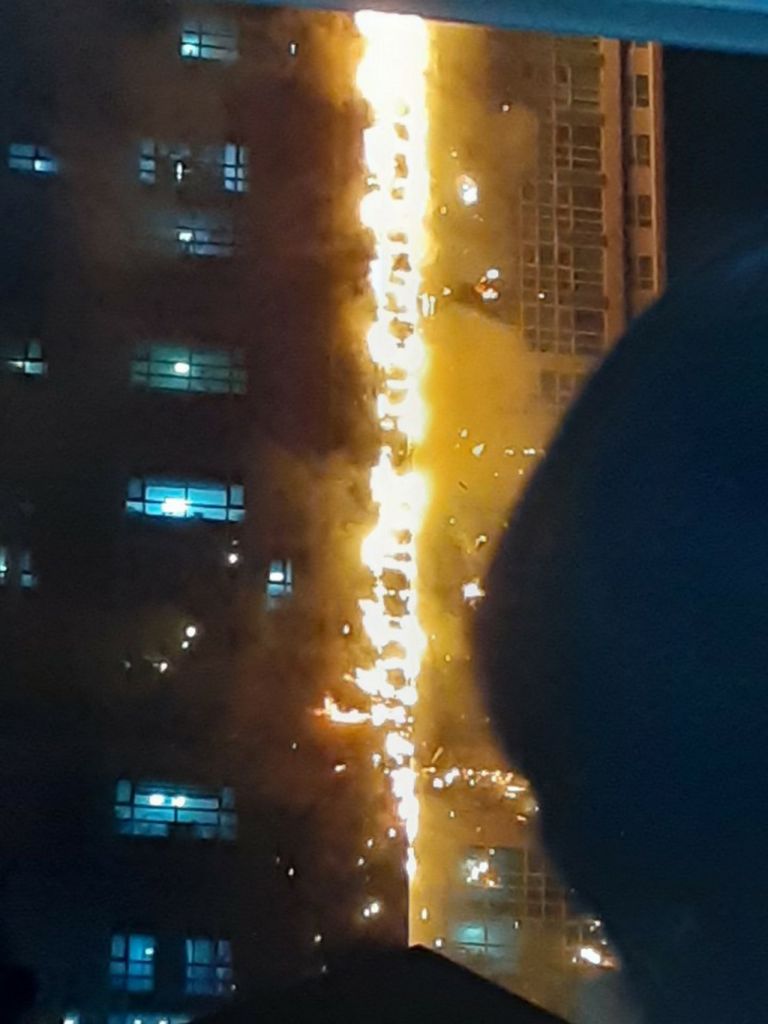 불길이 번지자 주민들이 옥상과 피난층, 건물 밖으로 대피하는 과정에서 가족끼리 서로 흩어져 애타게 찾기도 했다.