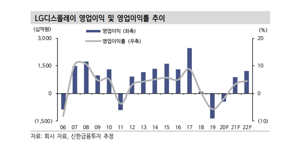 소현철 신한금융투자 연구원은 “32인치와 55인치 LCD TV 오픈셀 가격이 각각 전 분기 대비 24%, 15% 상승했기 때문”이라며 “POLED 영업적자가 축소됐고 광저우 OLED TV 라인 가동이 정상화됐다”고 말했다.
