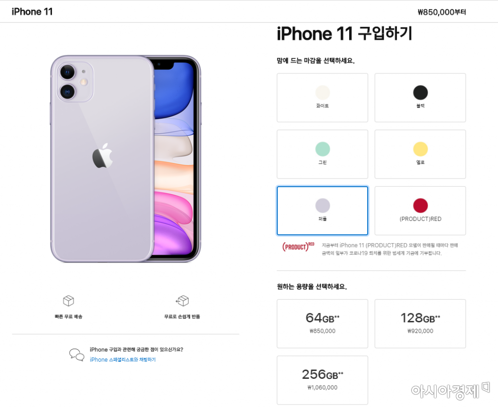 아이폰11의 가격이 85만원으로 인하됐다. (사진=애플코리아 홈페이지)