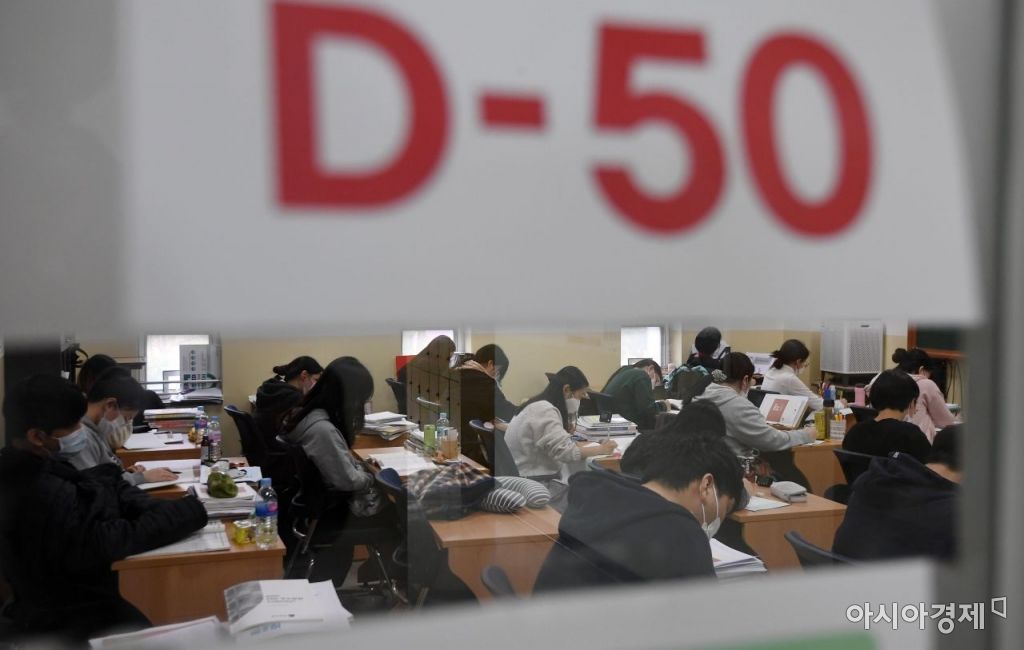 2021학년도 대학수학능력시험을 50일 앞둔 14일 서울 강남구 종로학원 강남본원에서 수험생들이 수업을 듣고 있다./김현민 기자 kimhyun81@