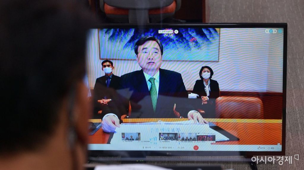 조현 UN주재 한국대사가 14일 국회에서 열린 외교통일위원회의에 재외공관 영상국감에 출석, 업무보고를 하고 있다./윤동주 기자 doso7@
