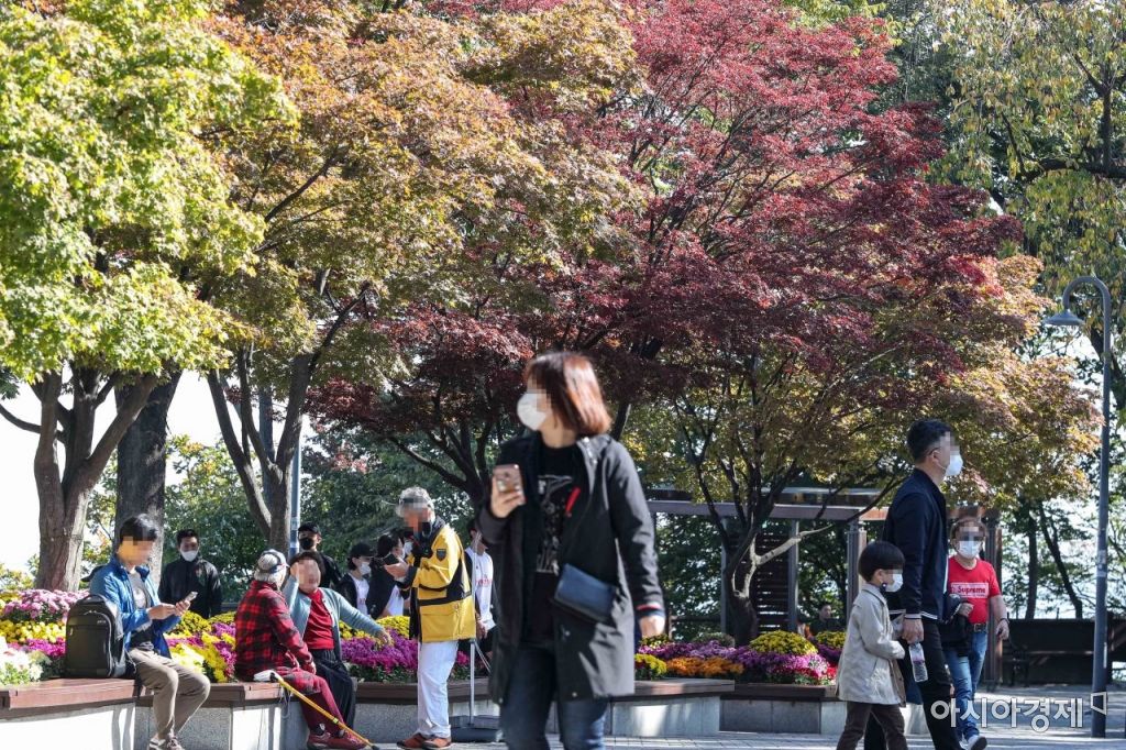 사회적 거리두기 1단계로 조정된 첫 주말인 18일 서울 남산을 찾은 시민들이 즐거운 시간을 보내고 있다./강진형 기자aymsdream@