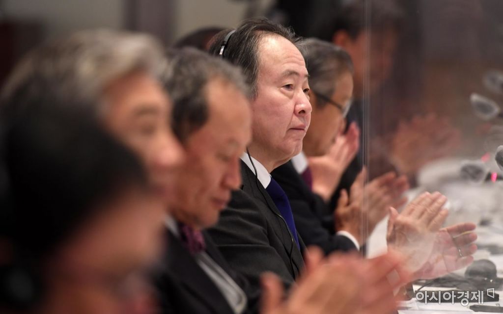 도미타 고지 주한일본대사가 22일 서울 영등포구 여의도 전경련 컨퍼런스센터에서 열린 주한일본대사 초청 기업인 간담회에서 박수치고 있다./김현민 기자 kimhyun81@