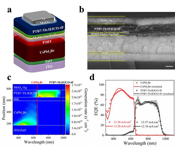 장 교수는 “광학시뮬레이션을 통해 상호보완적인 태양광 흡수 영역을 갖는 페로브스카이트와 고분자 소재를 각각 디자인하고, 두 개의 단위 전지를 결합할 때 발생하는 ‘전압 손실’을 최소화해 효율을 크게 높일 수 있었다”고 설명했다.
