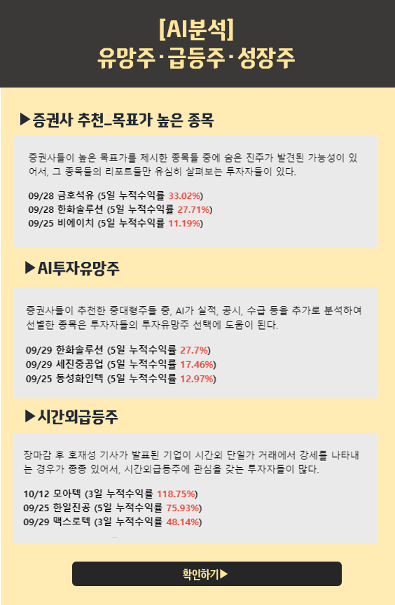 ‘AI라씨로’는 투자자들이 많이 검색한 키워드 관련 종목 및 증권사들이 추천한 중대형주들 중 실적, 공시, 수급 등을 추가적으로 AI가 분석하여 뜰만한 종목에 대한 정보를 제공 중이다. 이외에도 시간외급등주, 3년 중 최고 영업이익을 기록한 기업 정보 및 주요 매매 주체들의 움직임이 포착된 종목에 대해서도 알려주고 있다. 덕분에 투자자들은 시간과 노력이 많이 드는 정보를 간편하게 실시간으로 제공받을 수 있다.