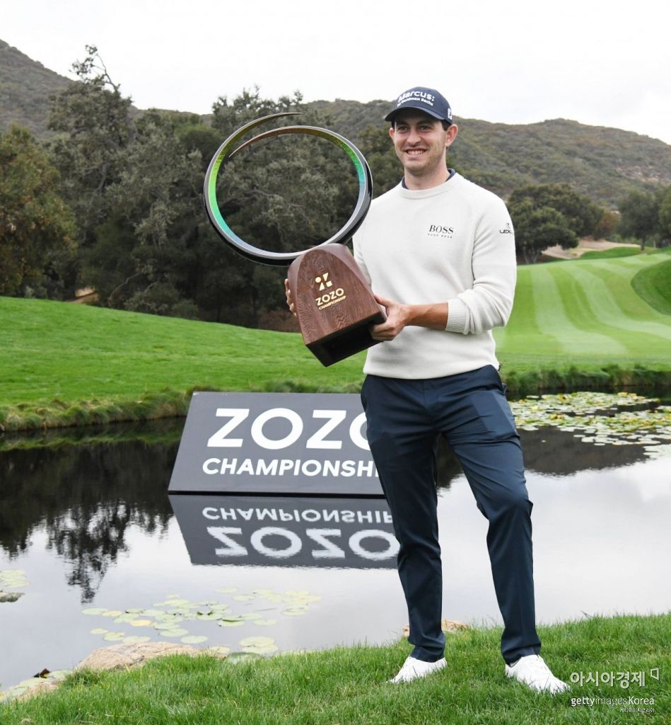 패트릭 캔틀레이가 조조챔피언십 우승 직후 트로피를 들고 환호하고 있다. 사우전드오크스(美 캘리포니아주)=Getty images/멀티비츠