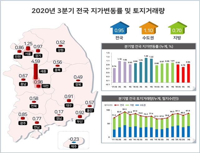 2020년 3분기 시도별 지가변동률 (제공=국토교통부)