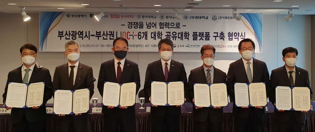 28일 부산시와 지역 6개 대학이 공유대학 플랫폼 구축 협약식을 가졌다.
