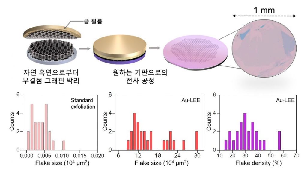 연구팀은 그래핀의 층간 결합력과 비슷한 수준으로 흑연 표면과 결합하는 금으로 흑연표면을 코팅한 뒤 테이프로 그래핀을 뜯어내는 방법을 개발했다. 이렇게 그래핀을 떼어내면 균열이 표면과 평행한 방향으로 전파돼, 단층의 그래핀만 분리할 수 있다.