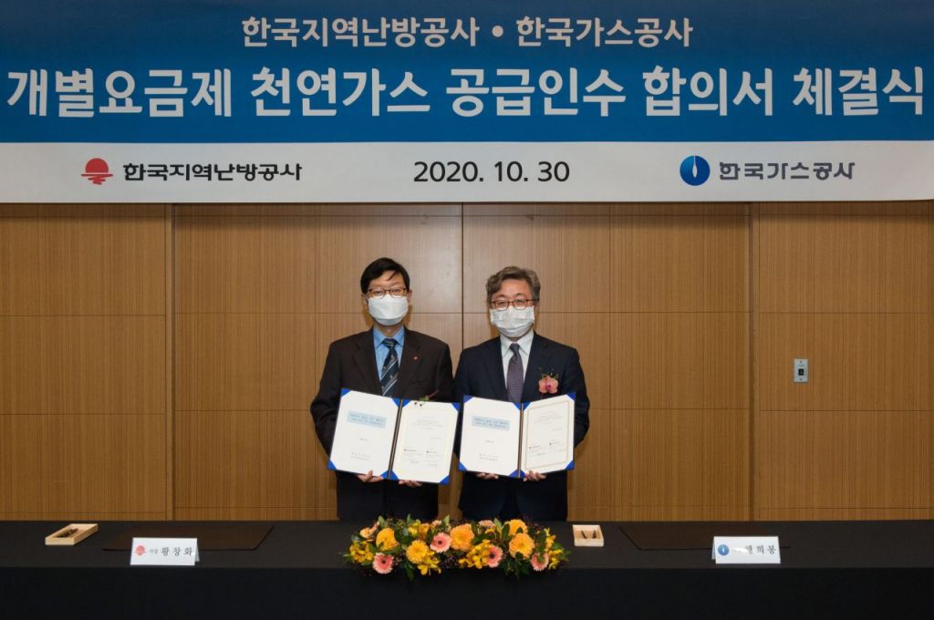 3일 가스공사에 따르면 인터컨티넨탈 서울 코엑스에서 한국지역난방공사(지역난방공사·한난)와 '발전용 개별요금제 공급·인수 합의서'를 지난달 30일 체결했다.