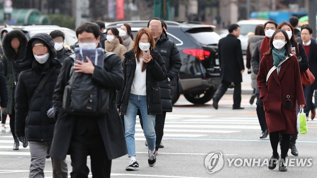 서울 광화문광장에서 시민들이 마스크를 쓰고 걸어가고 있다/사진=연합뉴스