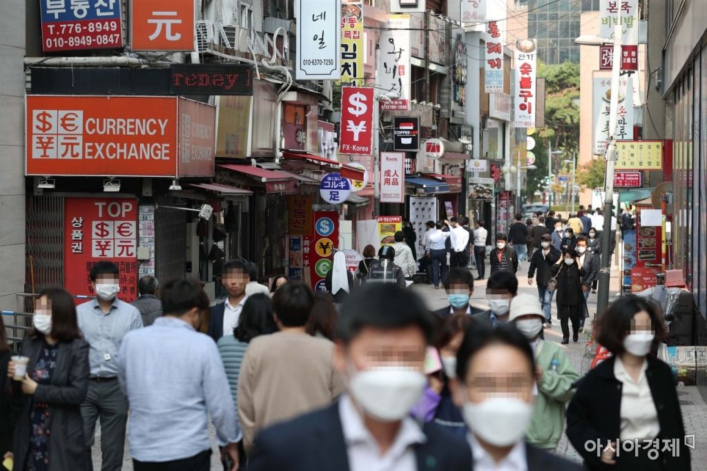 정부가 사회적 거리두기를 1단계로 완화한 12일 서울 명동에서 직장인들이 점심식사를 위해 이동하고 있다. /문호남 기자 munonam@