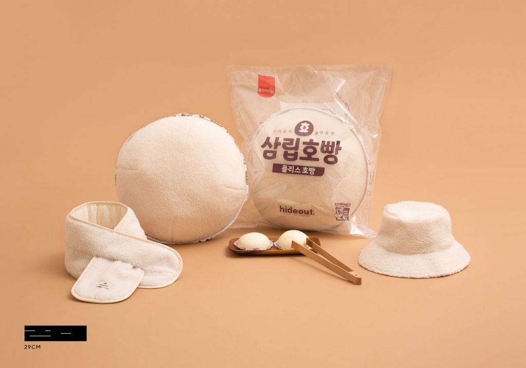삼립호빵 플리스는 ‘플리스 호빵 쿠션’과 ‘플리스 재킷’ 두 가지 상품으로 구성됐다. 두 가지 상품 모두 고밀도, 고중량의 플리스 소재를 사용해 따뜻하면서도 포근함까지 느껴질 수 있도록 기획했다. 플리스 호빵 쿠션은 쿠션, 머플러, 버킷햇으로 이루어진 방한 3종 세트로, 삼립호빵의 대표 상품인 단팥 호빵의 외관을 똑같이 묘사한 것이 특징이다.