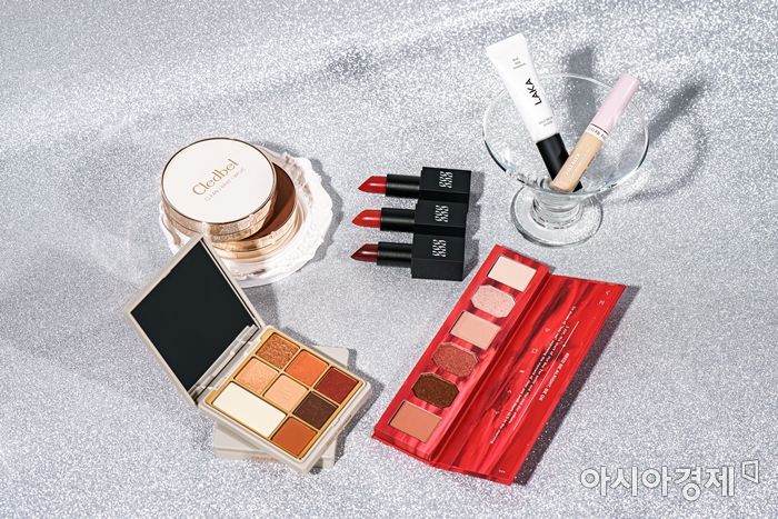 바이브레이트 코스메틱 '이미지네이션 벨벳 립 컬러', 라카 '와일드 브로우 셰이퍼', 더샘 '커버 퍼펙션 픽실러', 투쿨포스쿨 '레이지 레드 무드 아이즈'
