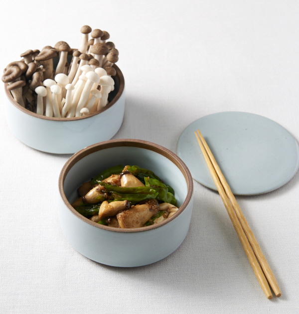 1. 미니 새송이버섯은 물에 살짝 씻어 체에 밭친다. 꽈리고추는 물에 씻어 반으로 어슷하게 썬다.
