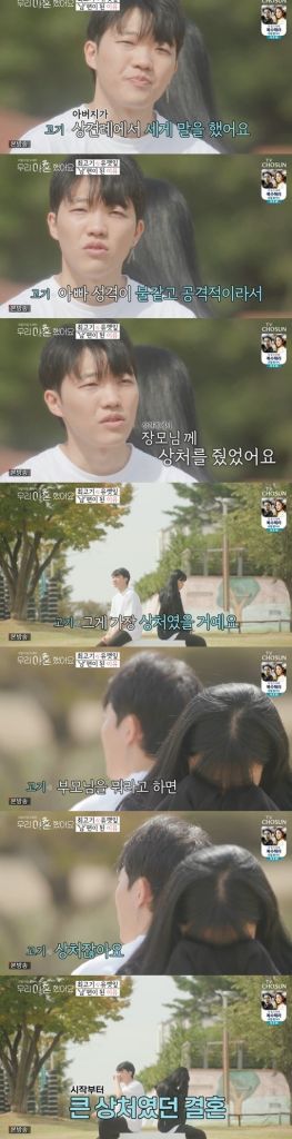 이어 "옛날에는 남자가 집을 해오면 여자는 혼수를 해오는 그런 게 있었다. 결혼할 때 그런 부분이 안 맞았다. 유깻잎 가족과 가졌던 상견례 자리에서 아버지가 이런 부분을 세게 말했고, 장모님이 상처를 받으셨다"라고 고백했다.
