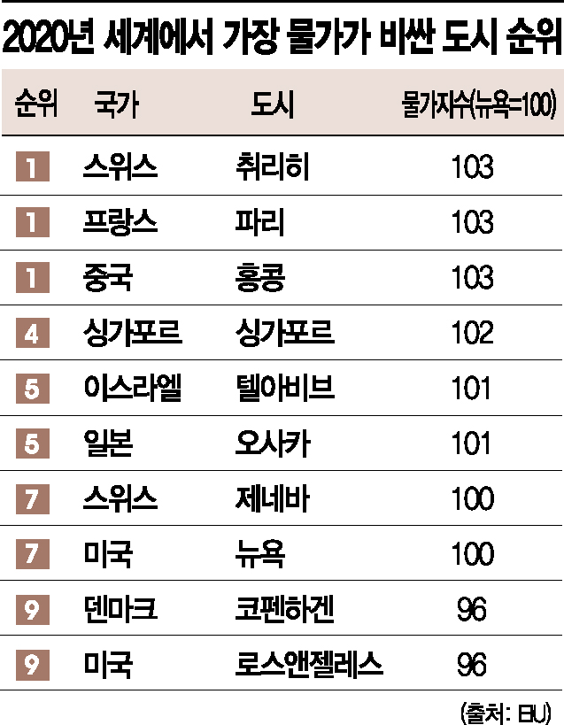 23일(현지시간) 영국의 경제주간지 이코노미스트 인텔리전스 유닛(EIU)이 최근 발표한 2020년 세계 생활비 분석 보고서에 따르면 싱가포르 물가는 세계에서 4번째로 비싼 것으로 조사됐다.