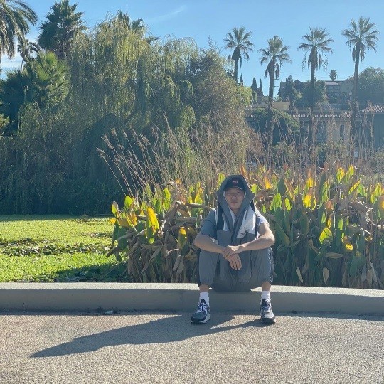 사진에서 류준열은 멋진 풍경과 함께 편안한 포즈로 앉아 있다.