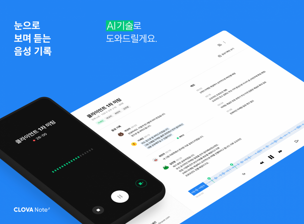 네이버 관계자는 "인터뷰나 업무 미팅 등 음성을 기록하는 다양한 상황에서 대화 내용을 받아 적거나 녹음을 다시 들으며 필요한 내용을 찾는데 들이는 시간과 노력을 크게 줄일 수 있다"고 설명했다.