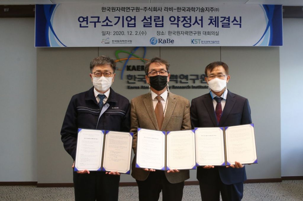 한국원자력연구원이 특허기술을 출자하고, 제5호 연구소기업 '라비' 설립을 위한 약정을 체결했다.(사진제공=한국원자력연구원)