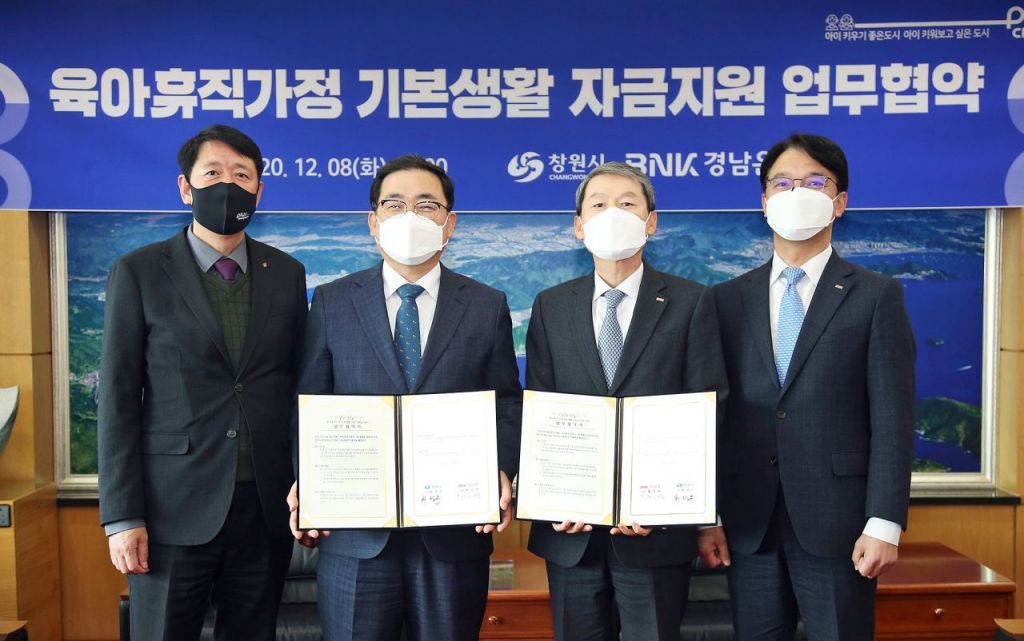 [아시아경제 영남취재본부 박새얀 기자] 경남 창원시가 8일 오전 10시 30분 접견실에서 BNK경남은행과 '2021년 육아휴직가정 기본생활 자금지원 업무협약'을 체결했다.
