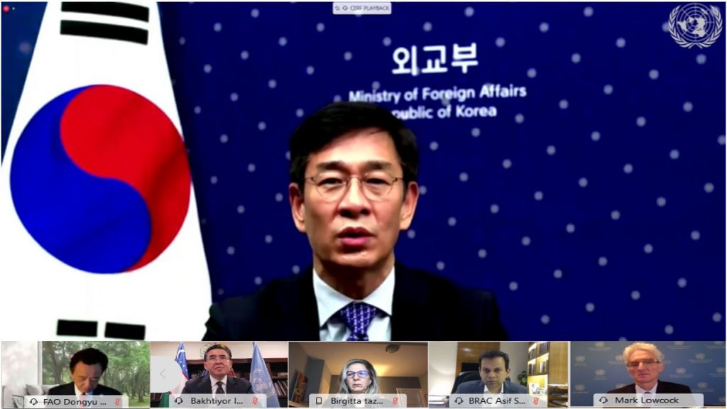 이번 회의는 유엔이 중앙긴급대응기금을 활용해 코로나19, 기후변화, 분쟁 등으로 유례없이 증가하고 있는 전 세계 인도적 수요에 적시에 충분히 대응할 수 있도록 국제사회의 지지와 기여를 모으기 위해 개최됐고 구테레쉬 유엔 사무총장을 비롯해 유엔 기구, 회원국 장ㆍ차관, 비정부기구측 대표 등이 참석했다.