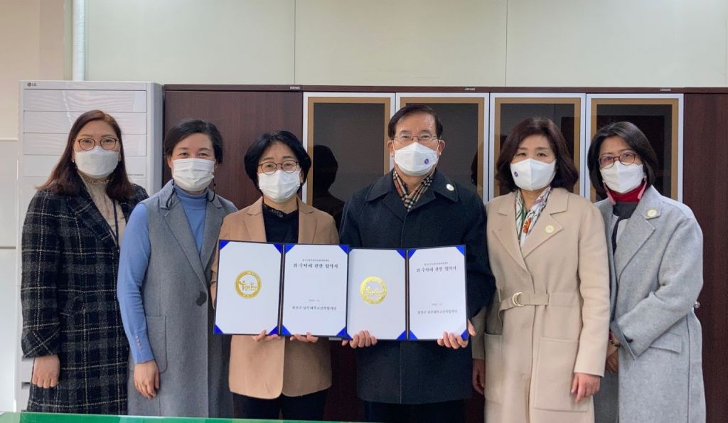 이번 협약은 민간위탁 기간 만료에 따른 것으로, 광산구는 공개모집과 심사위원회 심의를 거쳐 남부대 산학협력단을 2021~2025년 센터 민간위탁기관으로 최종 선정했다.