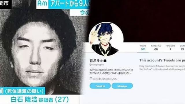 시라이시가 살해한 9명의 피해자. 8명은 젊은 여성, 1명은 남성이다. 사진=트위터 캡처.