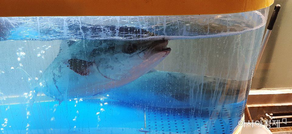 서울 한 번화가 횟집 수족관에 보관 중에 있는 방어. 사진=한승곤 기자 hsg@asiae.co.kr.