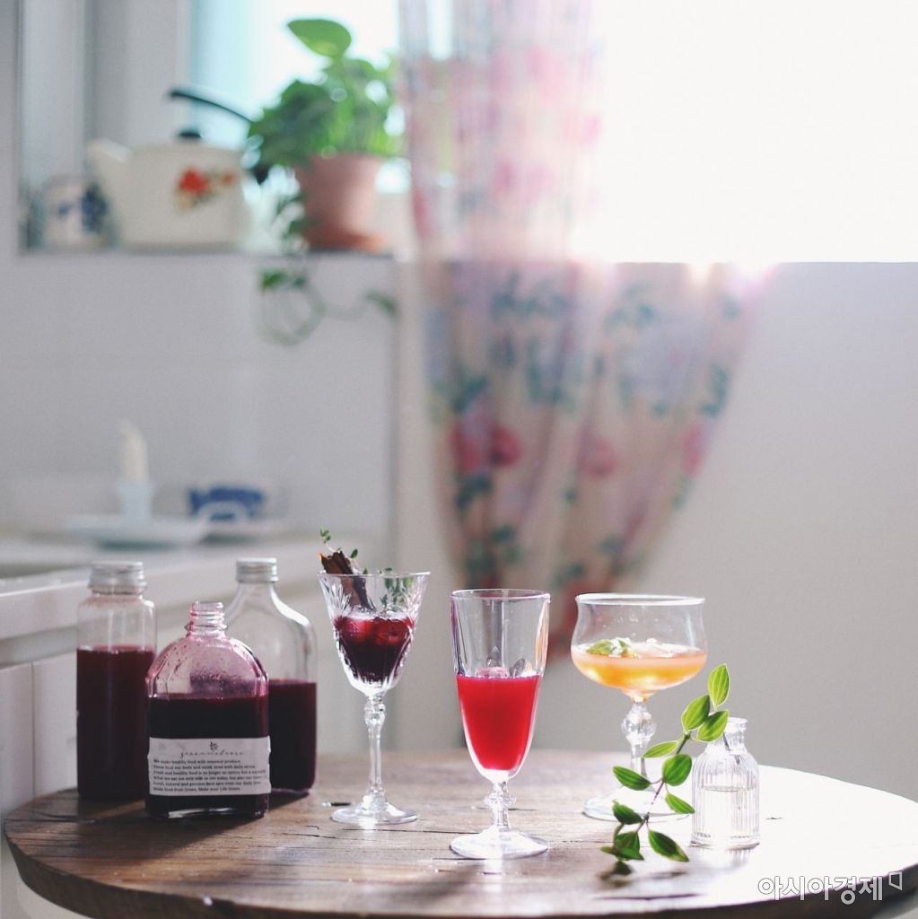 "코디얼은 허브나, 꽃을 활용해 다양하게 만들 수 있기 때문에 시간, 장소, 상황, 분위기나 느낌을 고려해 기분 전환용 음료로 선택해 마실 수 있습니다."