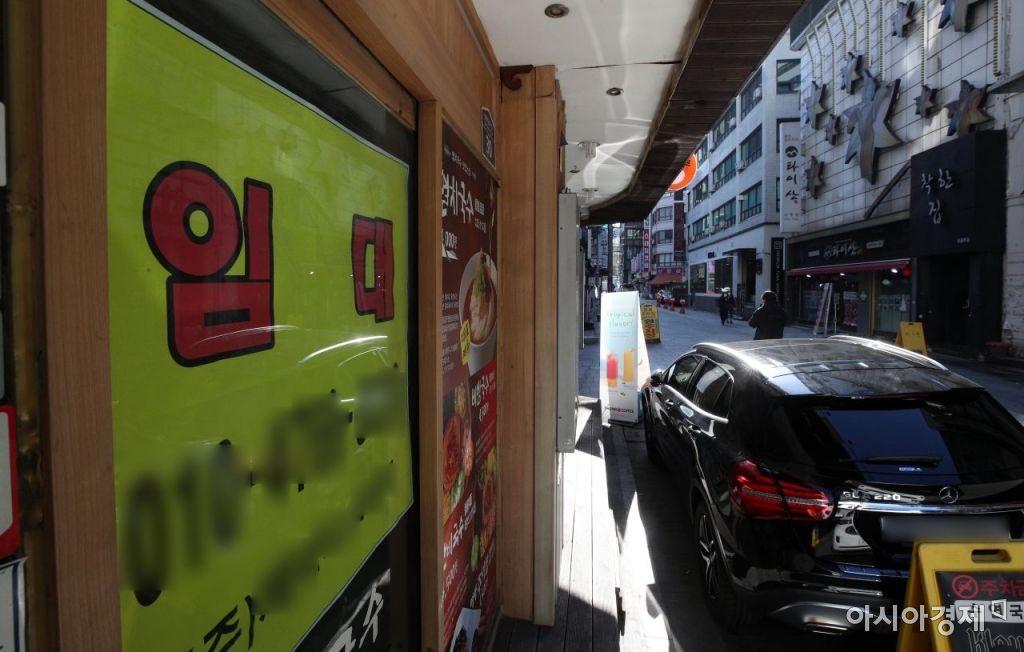 국내 신종 코로나바이러스 감염증(코로나19) 확진자가 급증하며 거리두기 3단계 조처가 검토중인 가운데 서울 시내의 한 음식거리에 자리한 음식점에 임대 안내문이 붙어 있다./김현민 기자 kimhyun81@