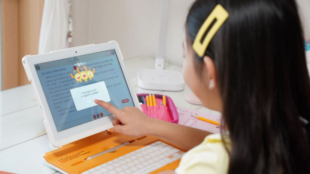 초등학생이 전과목 AI학습 '스마트올'을 이용해 학습하고 있다. 사진 = 웅진씽크빅 제공