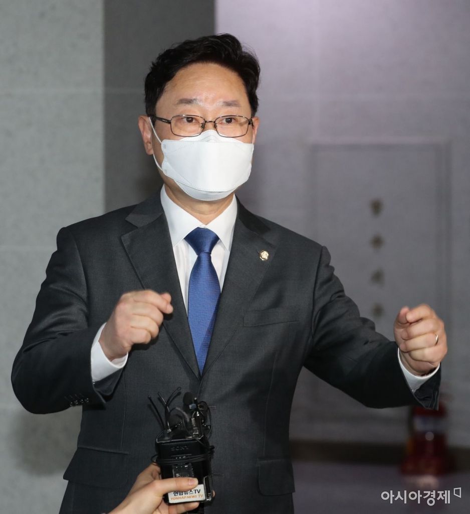 신임 법무부 장관 후보자로 내정된 박범계 더불어민주당 의원이 30일 국회의원회관에서 법무부 장관으로 내정된 소감을 밝히고 있다./윤동주 기자 doso7@
