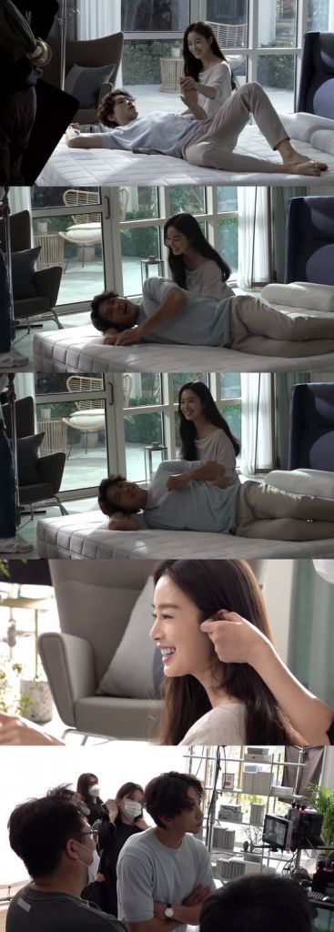 비와 김태희가 광고 촬영을 하고 있다. 사진=바디프랜드컴퍼니 유튜브 캡처.