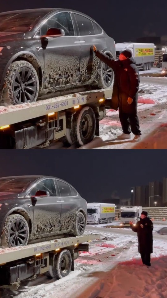누리꾼들은 "군대 가는 아들 떠나보내는 아버지 같다", "어디 다친 데는 없냐", "테슬라 어떡하냐" 등의 반응을 보였다.