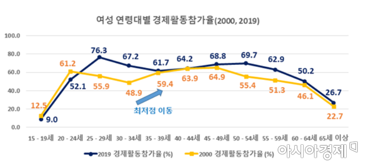 연령대별 기혼여성 비율과 취업여성 규모(출처=여가부)