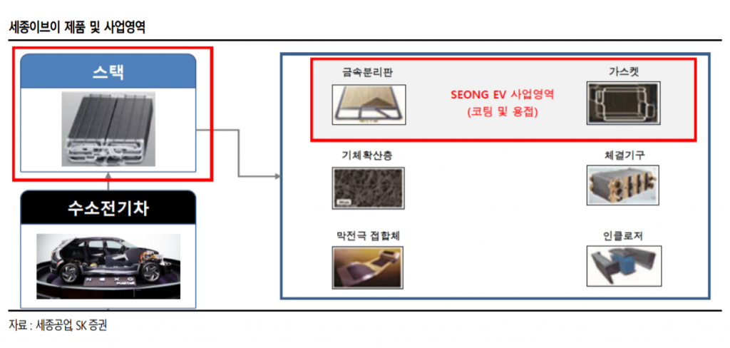 서 연구원은 "빠른 성장이 예상되는 수소차 시장의 주도권을 잡기 위한 선두 업체의 라인업 확대 시도는 자연스러운 일"이라며 "세종공업의 100% 자회사인 세종이브이는 수소차용 연료전지 스택의 핵심부품인 금속 분리판 공급을 준비하고 있다"고 분석했다.